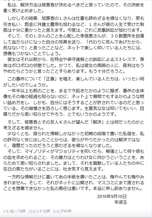— 辛淑玉 (@shinsugok) 2016年9月10日